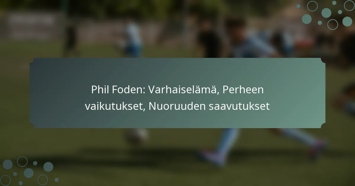 Phil Foden, joka on kotoisin Stockportista, Englannista, kasvoi ympäristössä, joka ruokki hänen intohimoaan jalkapalloa kohtaan jo varhaisessa iässä. Perheen vahva tuki opetti hänelle arvot ja työmoraalin, jotka ovat tarpeen menestykselle urheilussa. Hänen huomattavat nuoruuden saavutuksensa, erityisesti Manchester Cityssä, osoittivat hänen poikkeuksellista lahjakkuuttaan ja loivat perustan hänen ammattilaisuralleen.